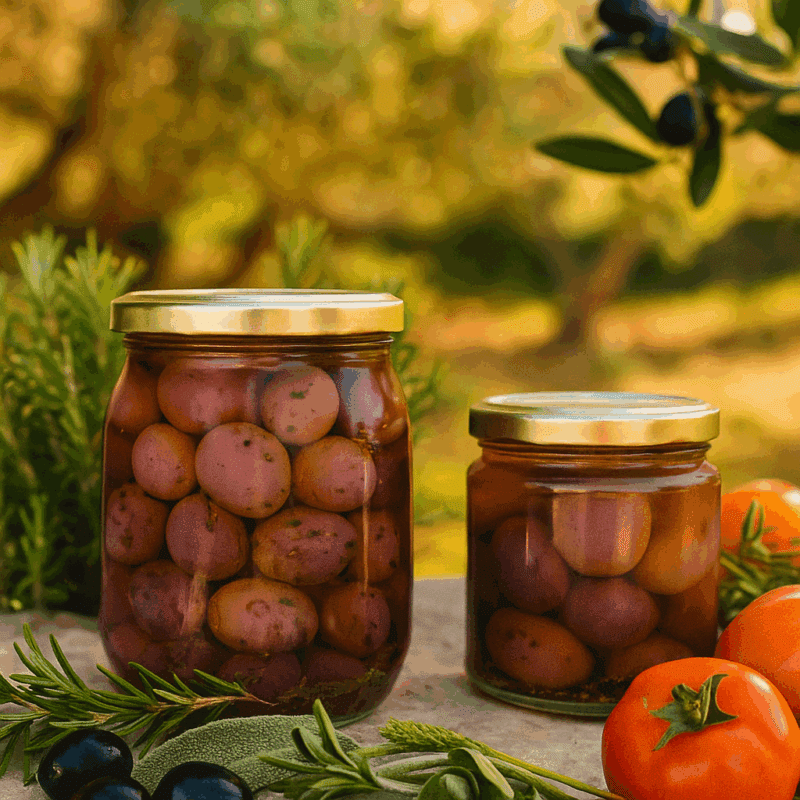 🫒 Olive nere siciliane, carnose e saporite, conservate in salamoia o condite con erbe mediterranee.